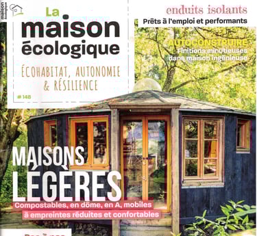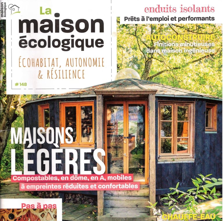 Le magazine La Maison écologique, pionner de l’habitat durable depuis plus de 20 ans, m’a rendu visite pour son dossier sur les maisons légères. Une belle rencontre devant une tarte aux pommes, au milieu des bois.