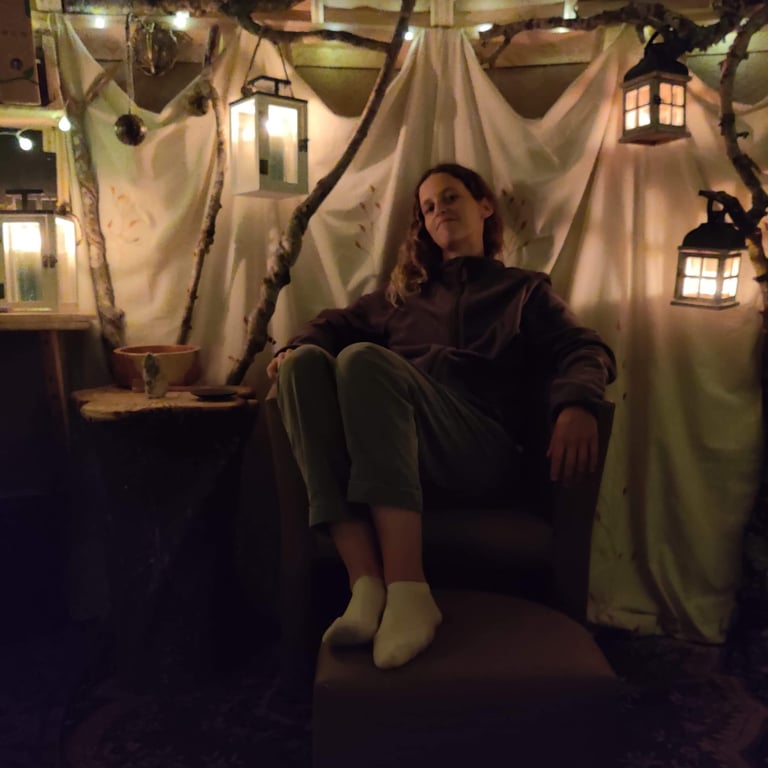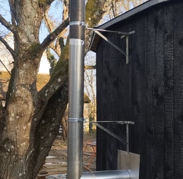 C’est ici que tout a commencé. Bois brûlé dehors, chaleur du poêle dedans. Des guirlandes, des briquettes, et la lumière du jardin qui entre par les fenêtres.