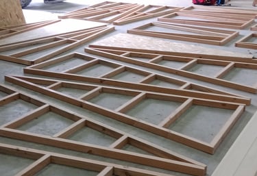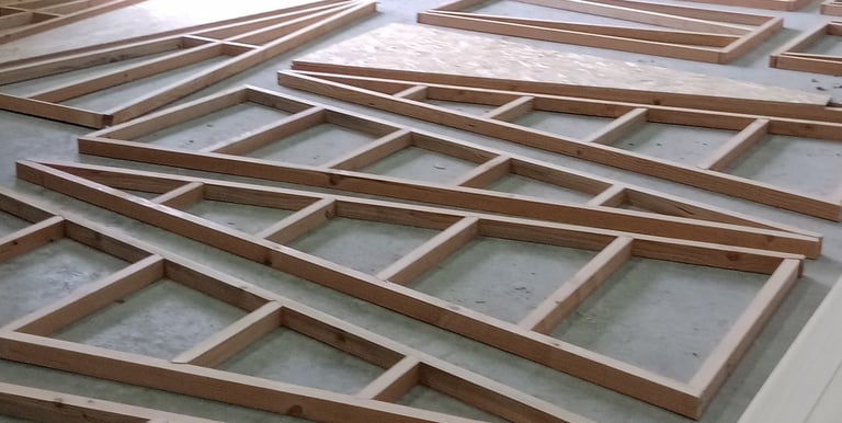 Je travaille avec une scierie locale — douglas ou sapin — scié à proximité.
